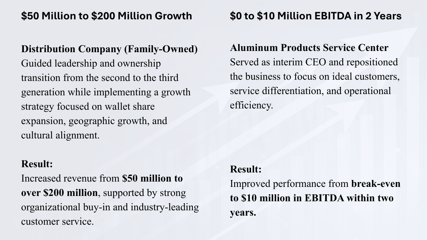 We help middle-market companies sharpen strategy, accelerate growth, strengthen execution, and increase enterprise value — through a proprietary and technology-enabled process built for real-world results.