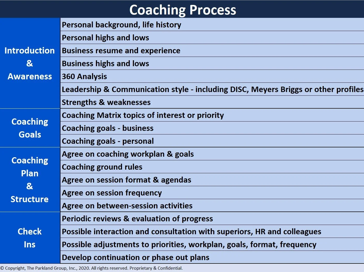 The Parkland team helps executives develop leadership, management, tactical, and team-building skills to improve performance and assume new and challenging roles. As executive coaches, we help leaders strengthen their skills, challenge behaviors that directly impact business results, and create a higher level of emotional-intelligence and self-awareness that can drive change. We also provide support. Every leader has weaknesses, and they need an impartial person to turn to for support and counsel.