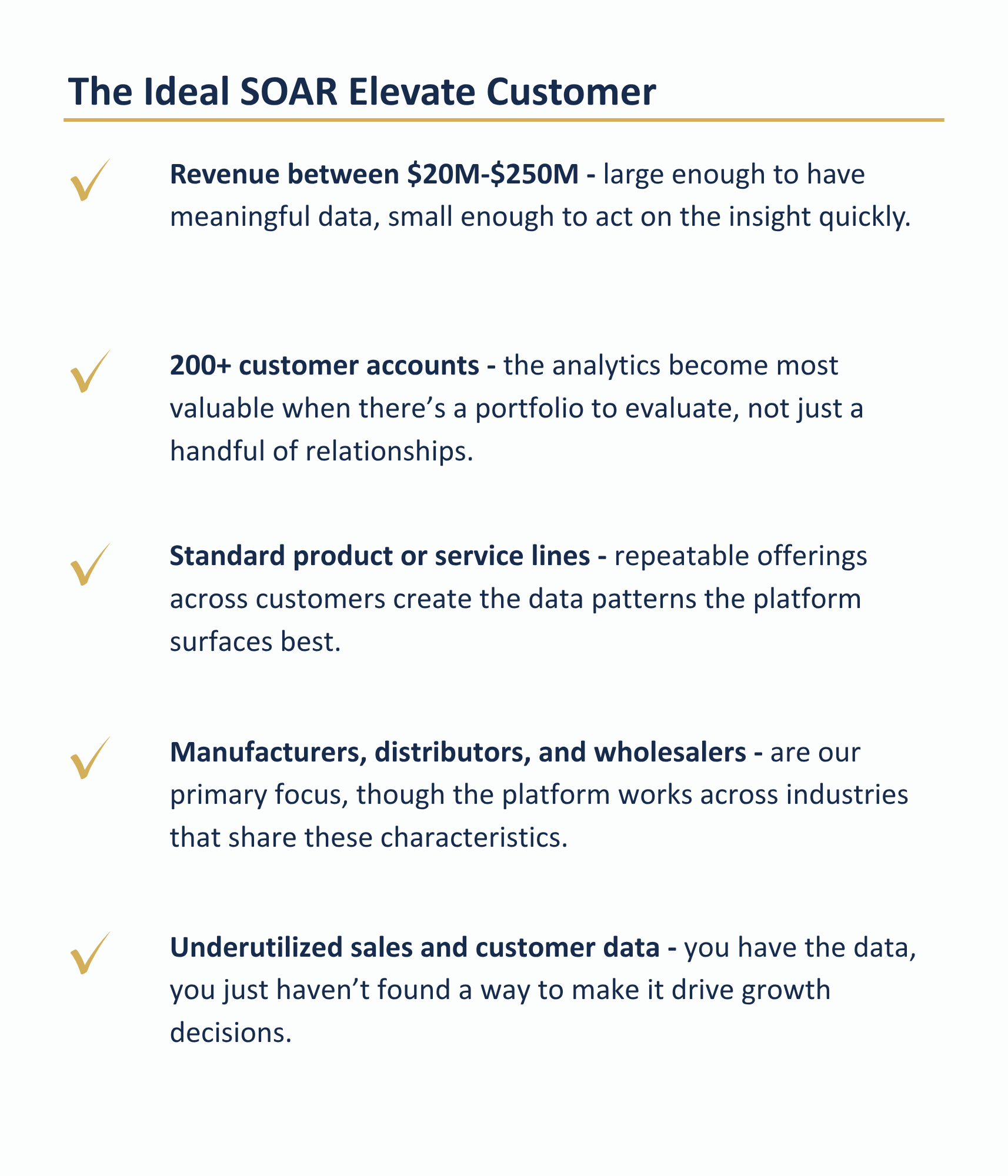 SOAR Elevate is designed for a specific type of company. We’re intentional about who we work with because the platform delivers the most value when the fit is right.