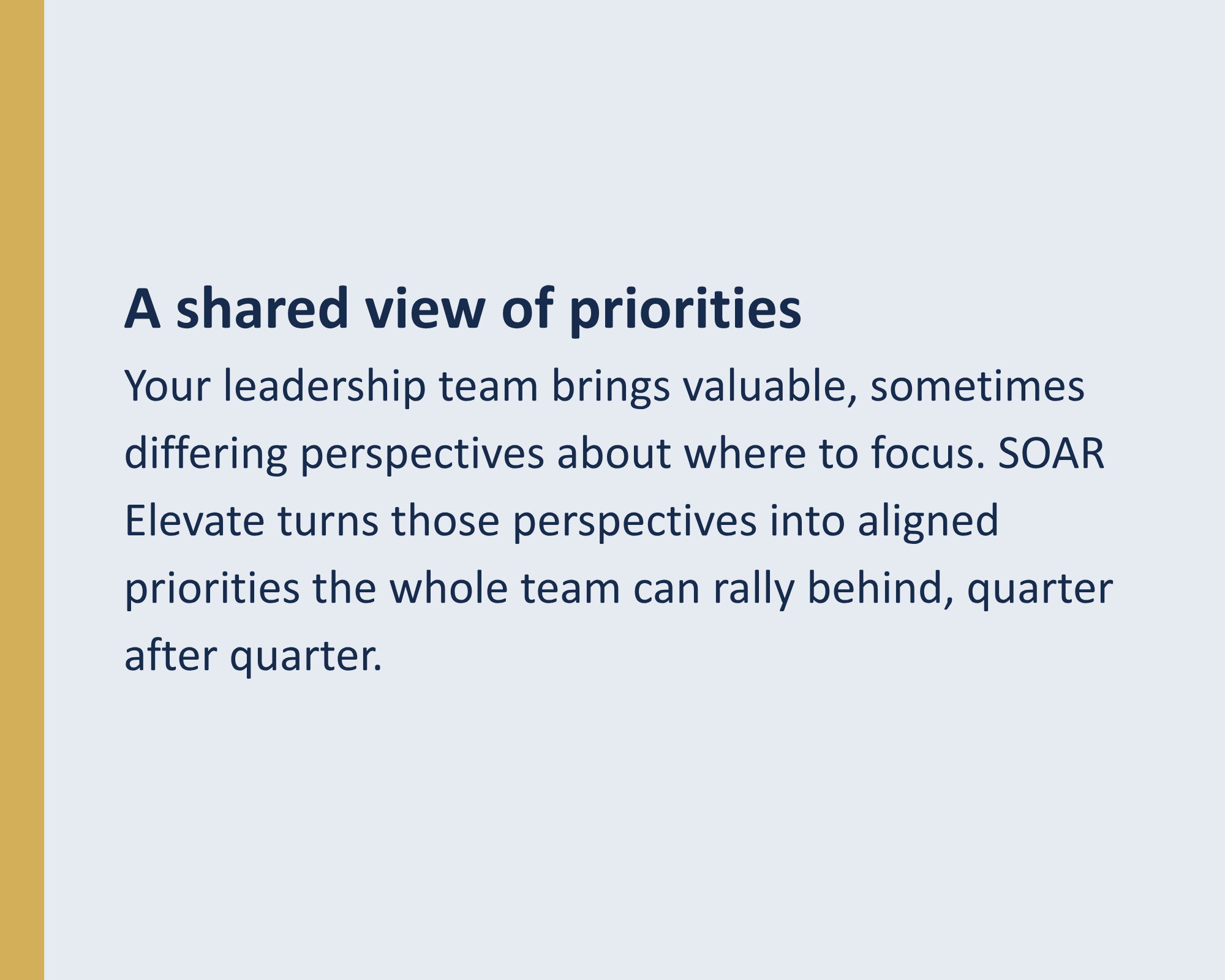 SOAR Elevate isn’t a one-time report. It’s a platform that leadership teams use continuously to run the growth conversation.